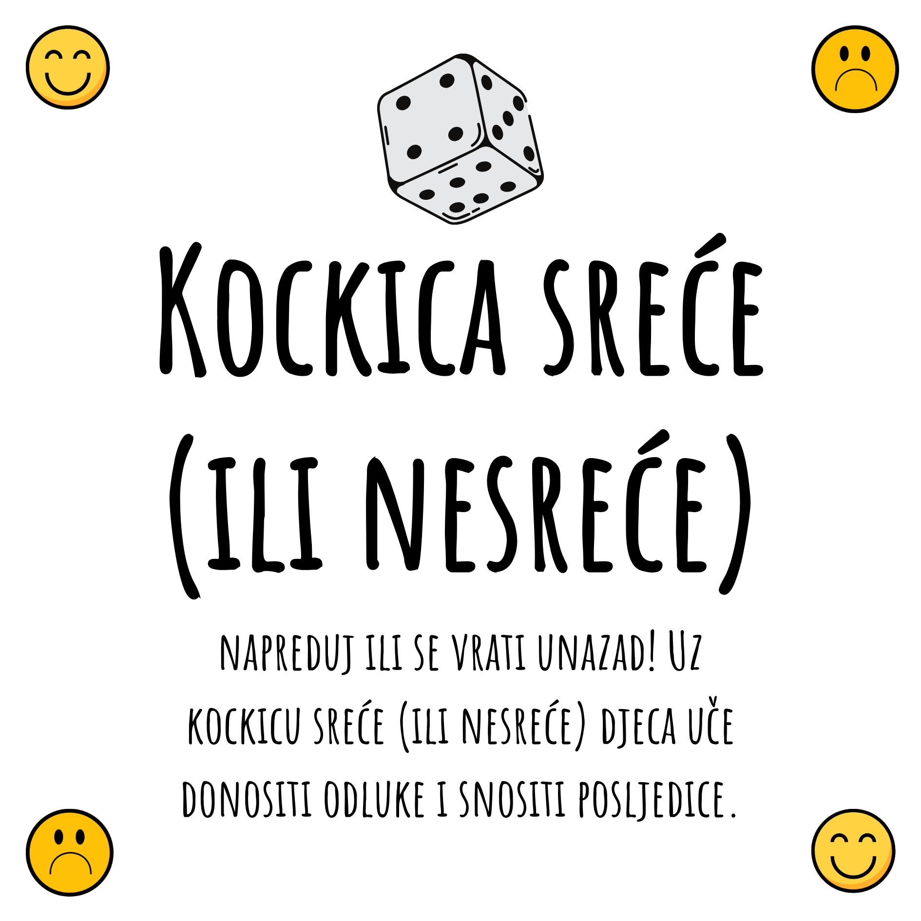 5. KOCKICA SREĆE (ILI NESREĆE) – napreduj ili se vrati unazad! Djeca uče donositi odluke i snositi posljedice.
