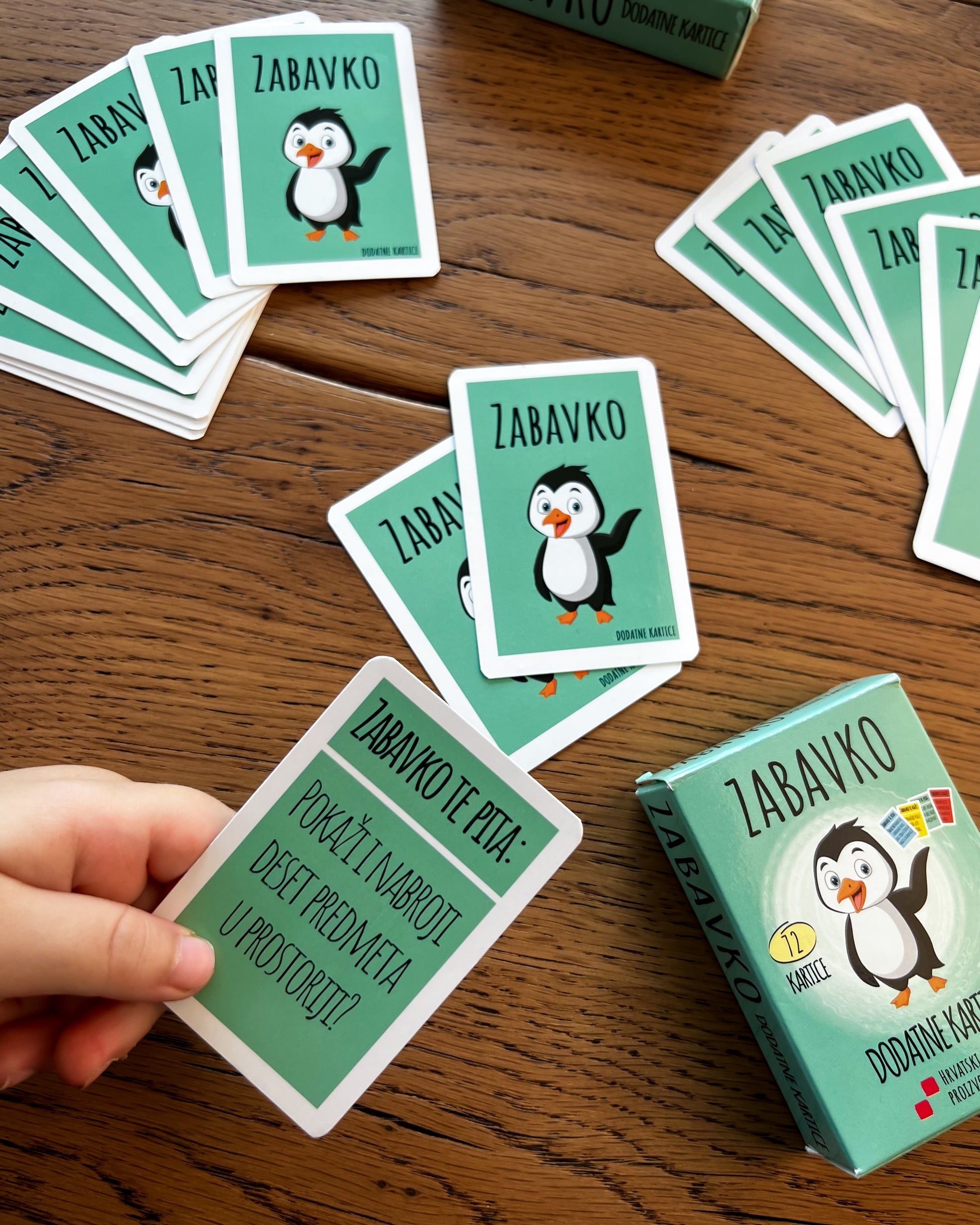 Zabavko dodatne kartice zamišljene su kao proširenje društvene igre ZABAVKO, donoseći novu, svježu razinu uzbudljivosti, izazova i smijeha u igru.